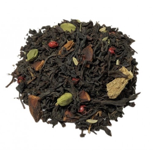 Чорний ароматизований чай із зеленим кардамоном, гвоздикою, фенхелем, імбиром, бадьяном і рожевим перцем. Має приємний смак і аромат