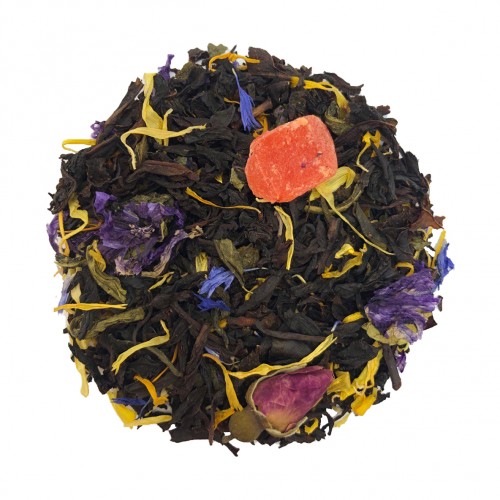 Композиція створена на основі чорного та зеленого чаю, з додаванням шматочків папаї , бутонів троянди, волошки, сафлора, мальви та календули, з натуральними ароматизаторами «Персика» та «Суниці». Переходьте до оновленої версії сайту, де зможете зробити своє замовлення ще зручніше та швидше