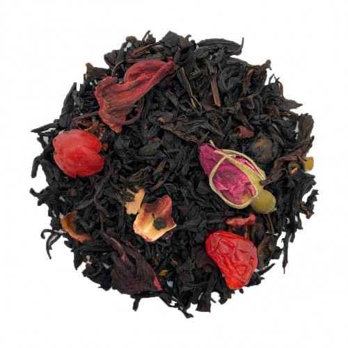 Чорний чай крупнолистовий, з додаванням вишні червоної, вишні з кісточкою, чайної троянди, ароматизатора «Вишня» та каркаде. Переходьте до оновленої версії сайту, де зможете зробити своє замовлення ще зручніше та швидше